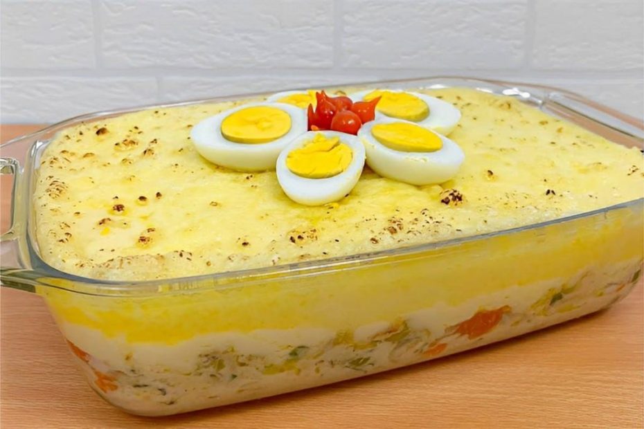 - Cubra com o purê de batatas e faça uma última camada de muçarela fatiada.