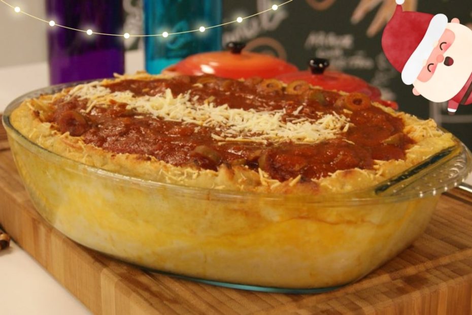 - Em seguida unte um refratário com manteiga e farinha de trigo, divida a massa e coloque a primeira parte da massa no fundo do refratário.