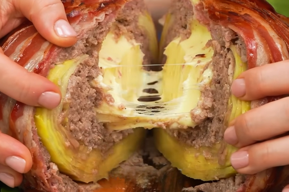 Este repolho recheado assado é uma receita surpreendente, perfeita para quem busca um prato diferente, saboroso e reconfortante. Preparado com carne moída bem temperada, queijo e bacon, o repolho fica extremamente macio após o longo tempo de forno, absorvendo todos os sabores do recheio. Para finalizar, um molho cremoso com picles, mostarda e endro traz equilíbrio, leve acidez e um toque especial que transforma o prato em uma opção elegante, ideal tanto para o dia a dia quanto para ocasiões especiais com convidados.